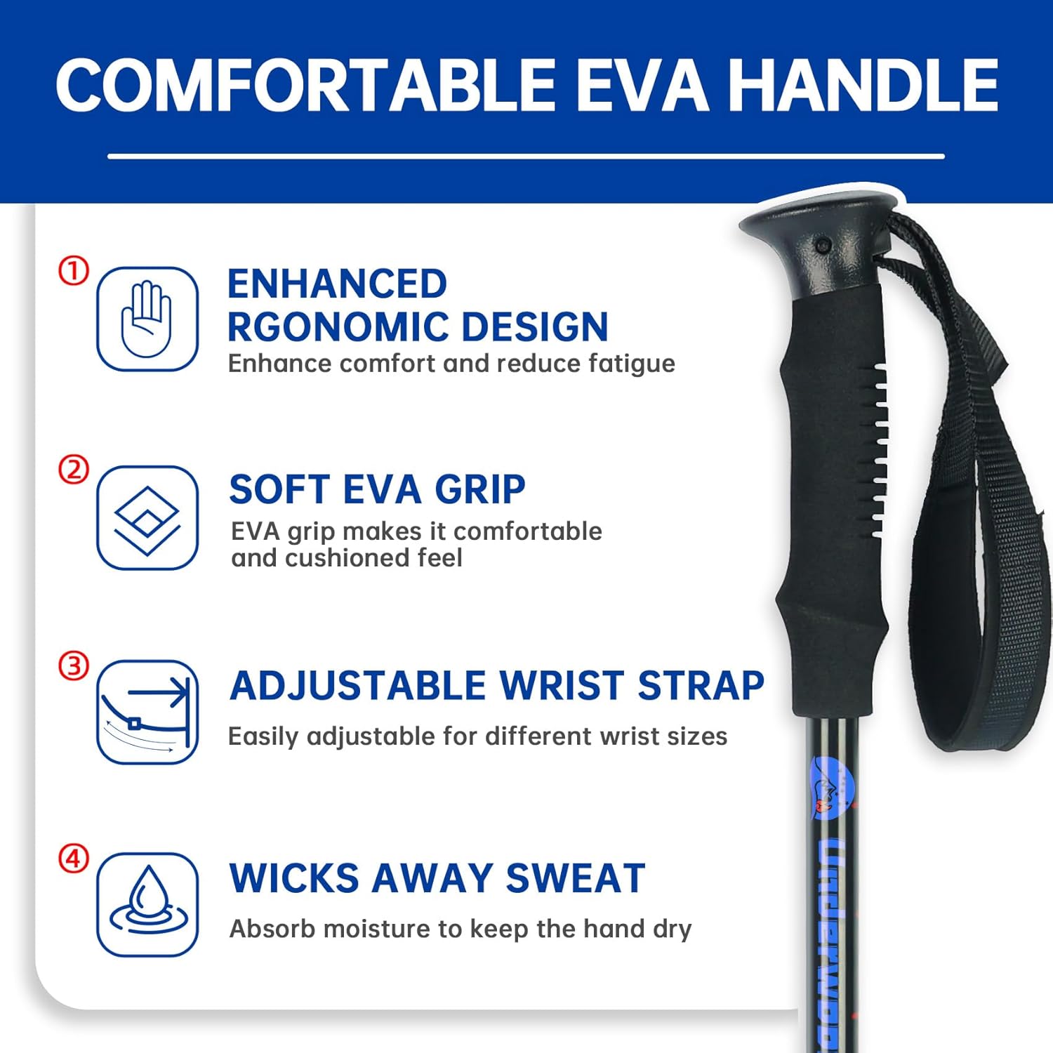 Introducing the Collapsible Trekking Poles for Hiking 2 Pack by Underwood Aggregator, the ultimate companion for your outdoor adventures. These adjustable aluminum hiking poles are designed for both beginners and seasoned hikers, offering support and stability on any terrain.
