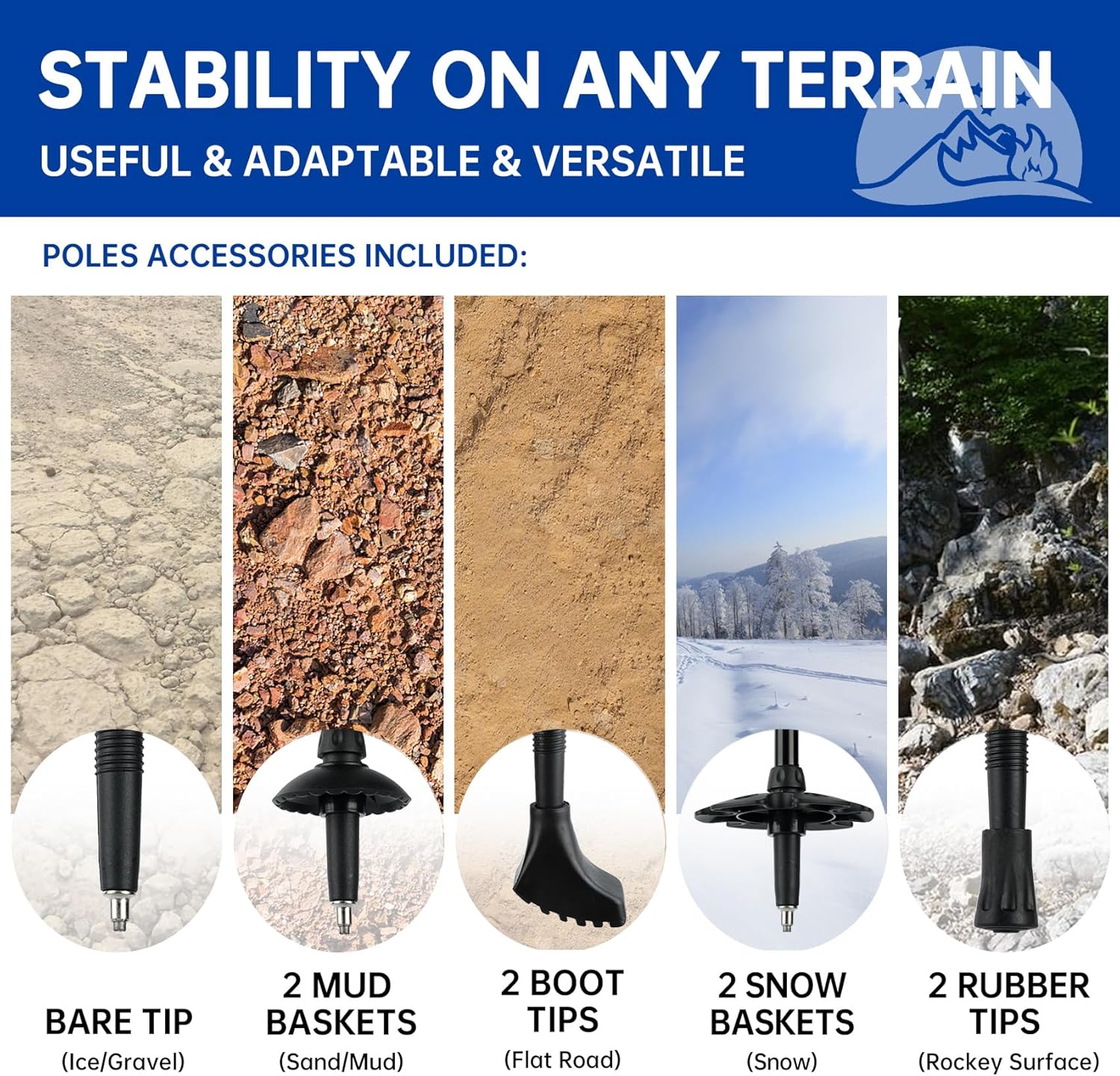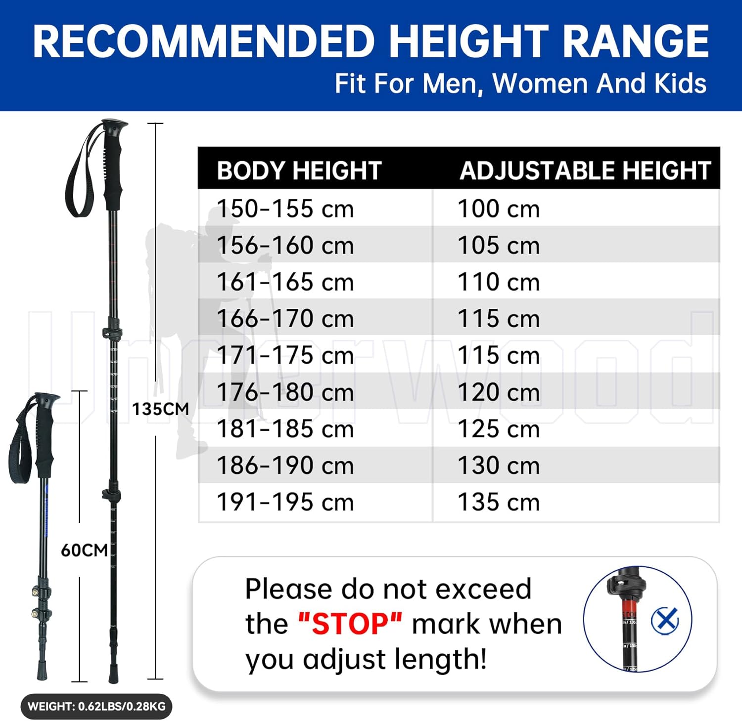 Made from high-quality aluminum, these lightweight Nordic walking sticks are durable and built to last. The collapsible design allows for easy storage and transport, making them perfect for backpacking and travel. With adjustable heights, these hiking poles are suitable for women, men, seniors, and even kids, ensuring a comfortable and customized fit for all users.